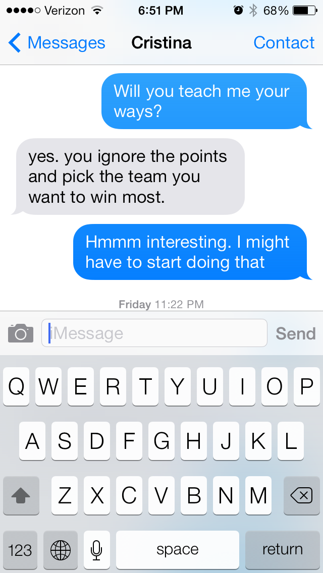 Sure, Mike Shanahan has totally butchered this RG3 situation from playing him in last year’s playoff game to this entire season, but Kirk Cousins is making me dolla dolla bills on Earn Like a Pro. GO KIRK COUSINS!!!
